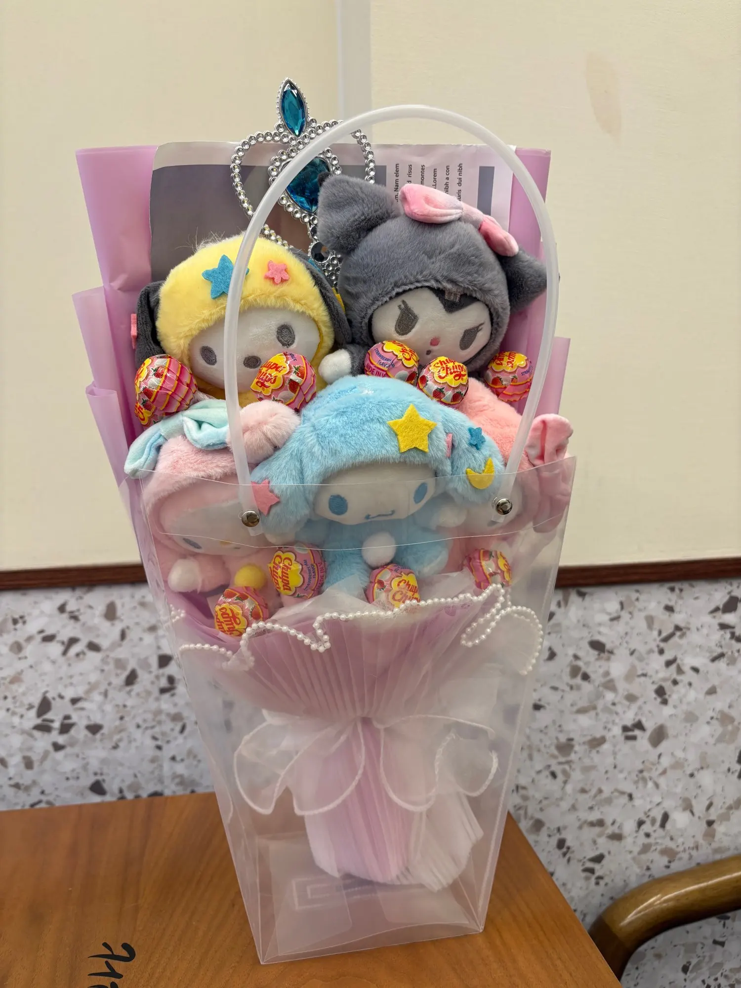 Absolutely adorable! The plush bouquet is even cuter in person. The my melody, kuromi, and cinnamoroll dolls are soft, colorful, and perfectly arranged. Such a sweet gift idea!”