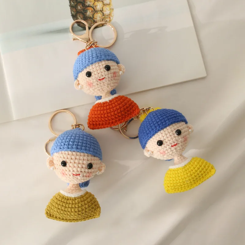 Cute Mini Plush Toy Phone Chain Hand-woven Knitted Pearl Girl Doll Pendant Jewelry For Girls Kawaii Key Pendant Bag Decoration