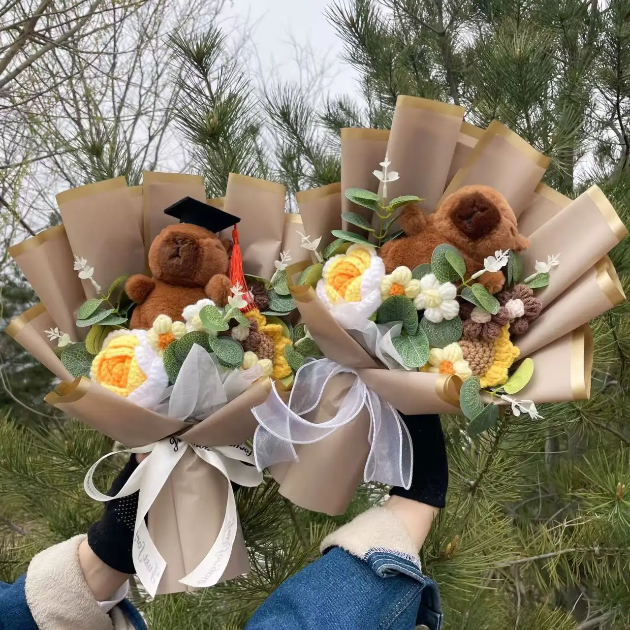 8 reviews for Kapibala plush Animals With Crochet Roses Sunflowers Creative Flower bouquets soft doll Christmas Graduation birthday Gifts